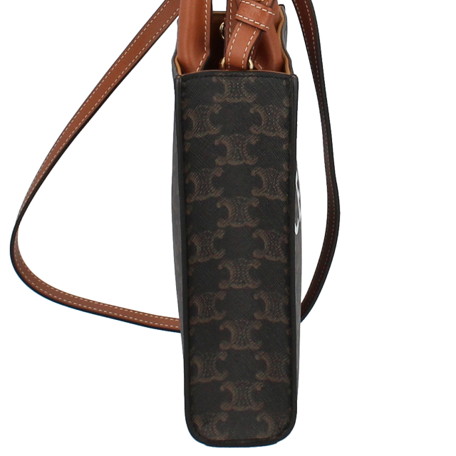 USED品。トリオンフ柄の丈夫なコーティングキャンバス地にレザーディティールが上品でカジュアルな印象のスクエア型のショルダーバッグ。ショルダーストラップは取り外し可能なので、ハンドバッグとしてもお使いいただけます。