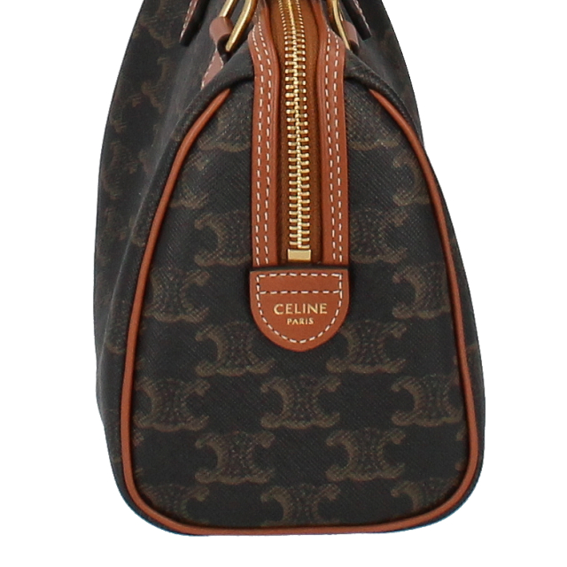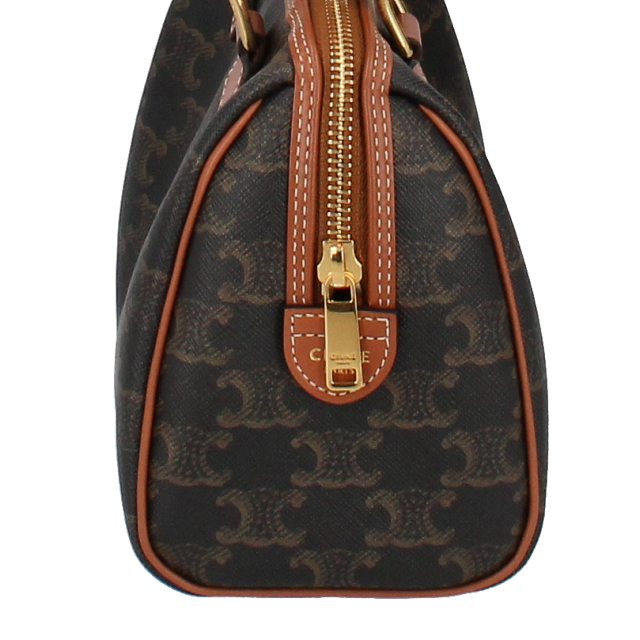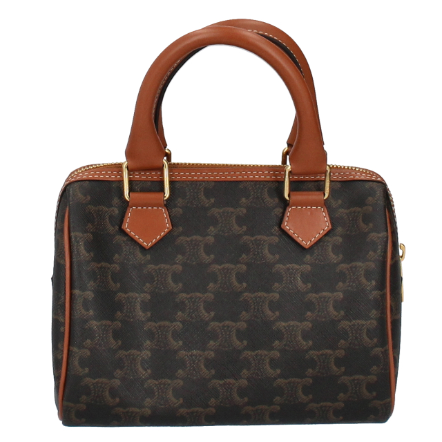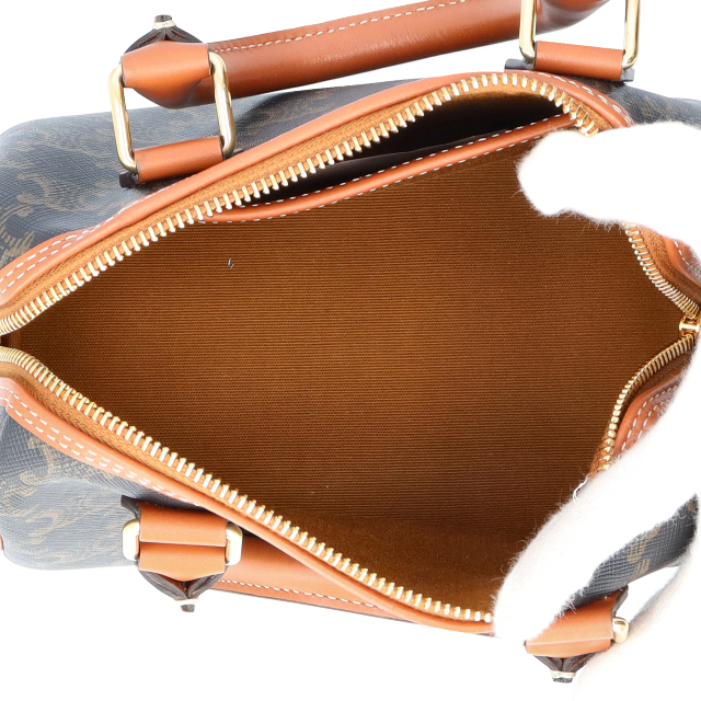 USED品。トリオンフ柄の丈夫なコーティングキャンバス地にレザーディティールが上品でカジュアルな印象のハンドバッグ。取外し可能なストラップでショルダーバッグとしてもお使い頂けます。