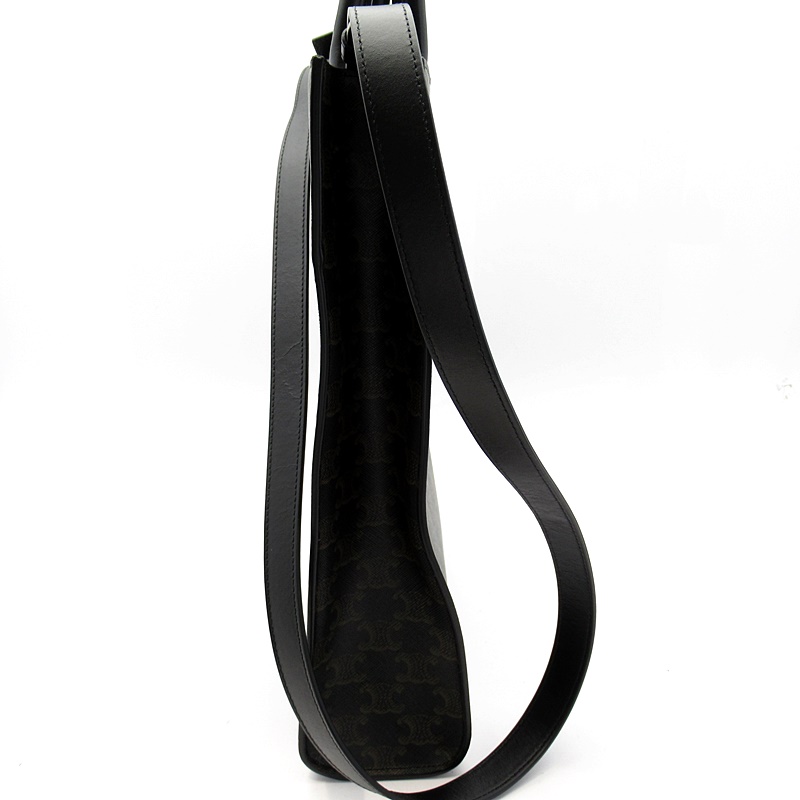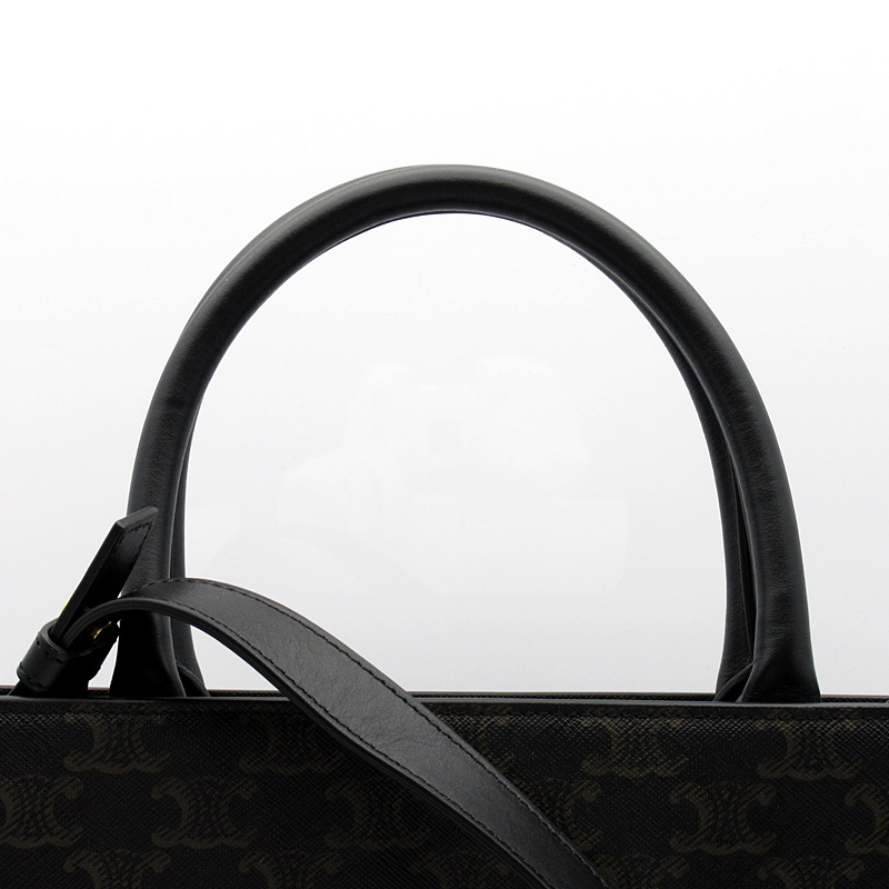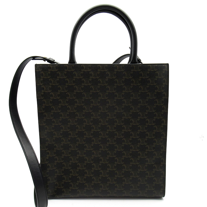 USED品。トリオンフモチーフを全面にあしらったクラシカルなデザインに、フロントロゴがモダンな印象を与えます。書類をしまいやすいスクエアフォルムに、大きなファスナーポケットを備え実用性も十分。着脱可能なショルダー付きで、様々なシーンに活躍します。