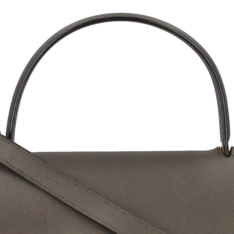 USED品。フラップの下に隠しメタリックピースとジッパークロージャーが付いたフラップクロージャー、後ろにジップ付きアウターポケットもあります。