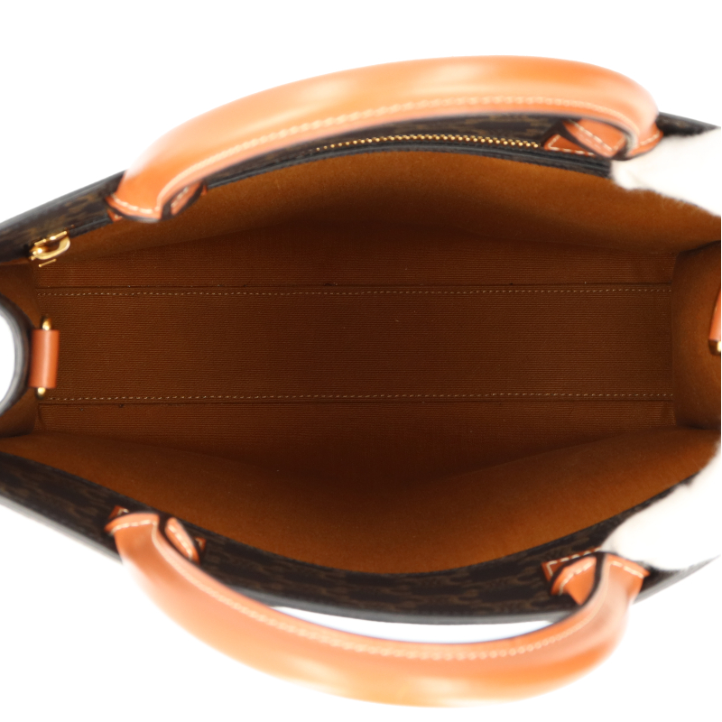 USED品。トリオンフ柄の丈夫なコーティングキャンバス地にレザーディティールが上品でカジュアルな印象のスクエア型のショルダーバッグ。ショルダーストラップは取り外し可能なので、ハンドバッグとしてもお使いいただけます。