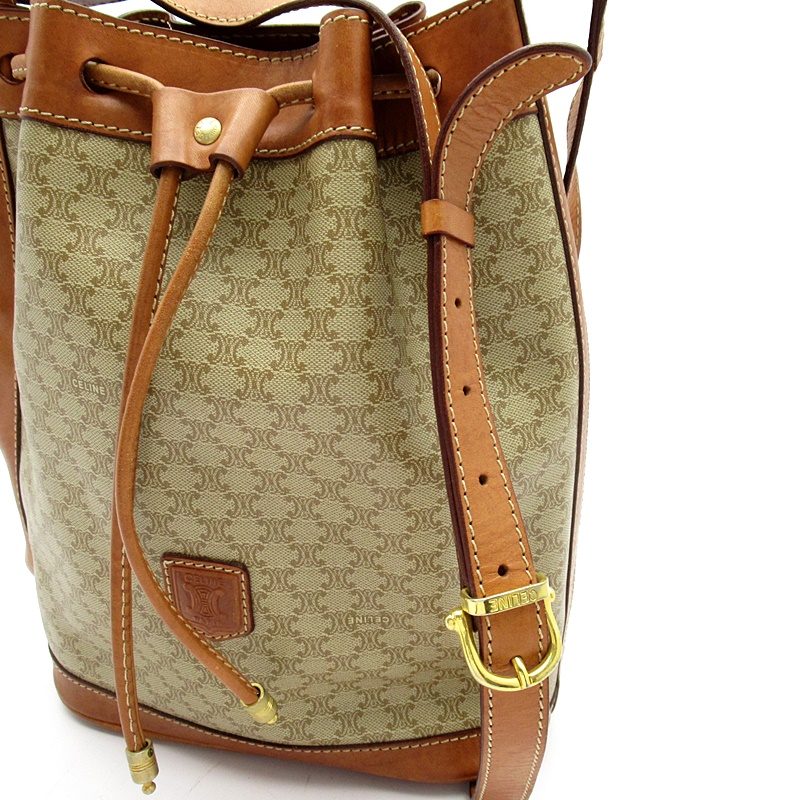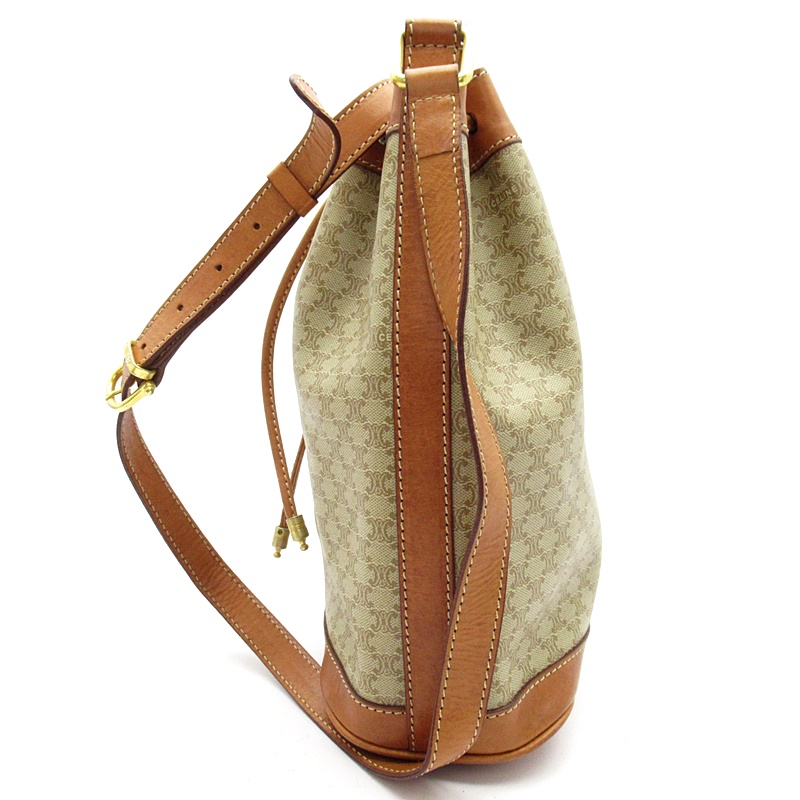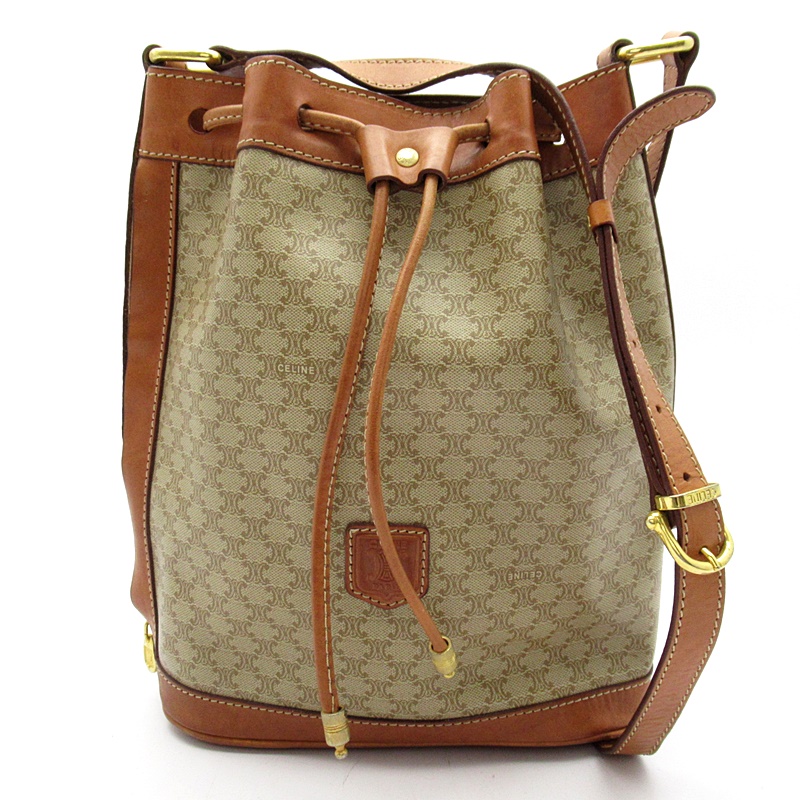 USED品。巾着型の可愛らしいショルダーバッグです。丸みのあるフォルムと人気のマカダム柄が、いつものファッションに彩りを添えてくれます。
