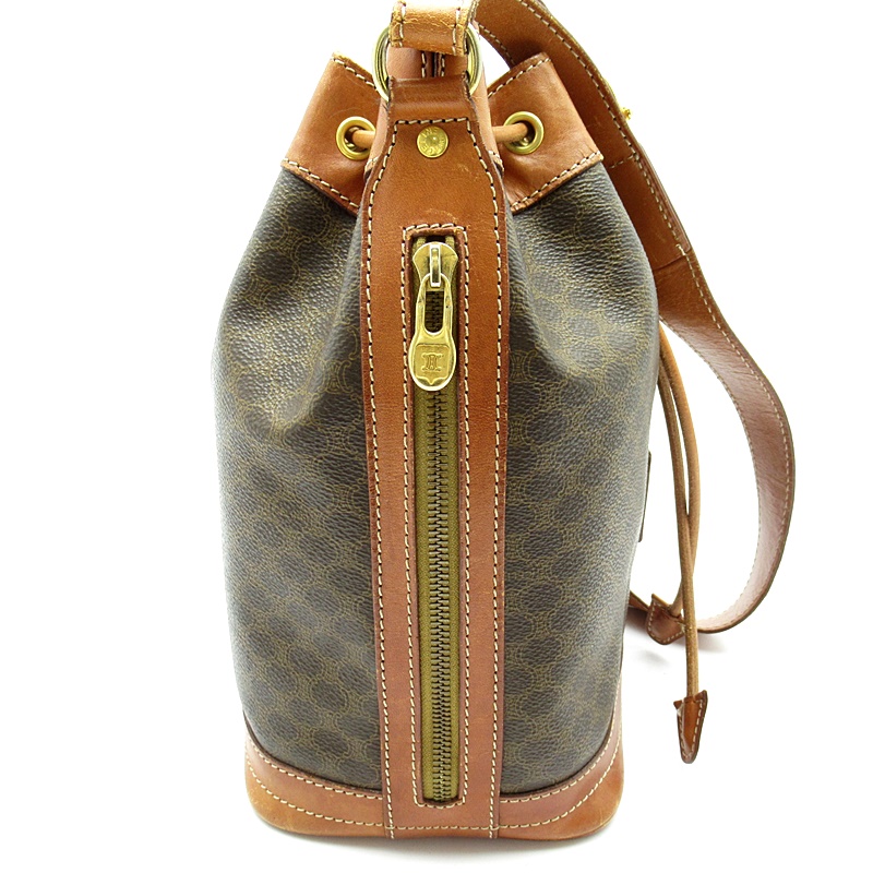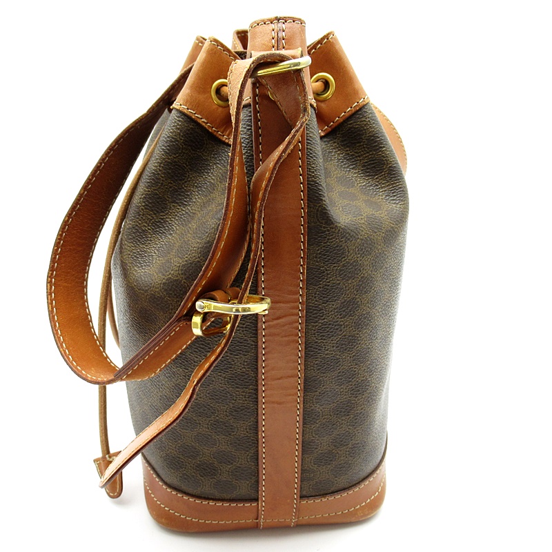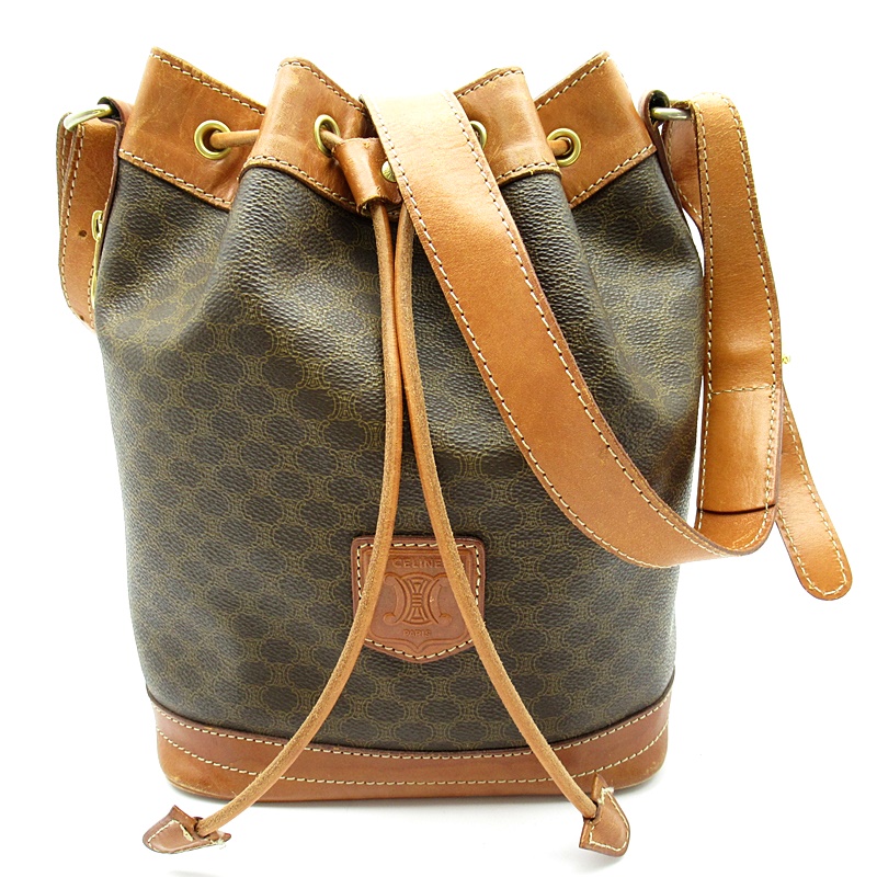 USED品。巾着型の可愛らしいショルダーバッグです。丸みのあるフォルムと人気のマカダム柄が、いつものファッションに彩りを添えてくれます。