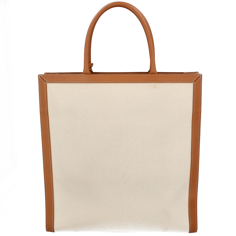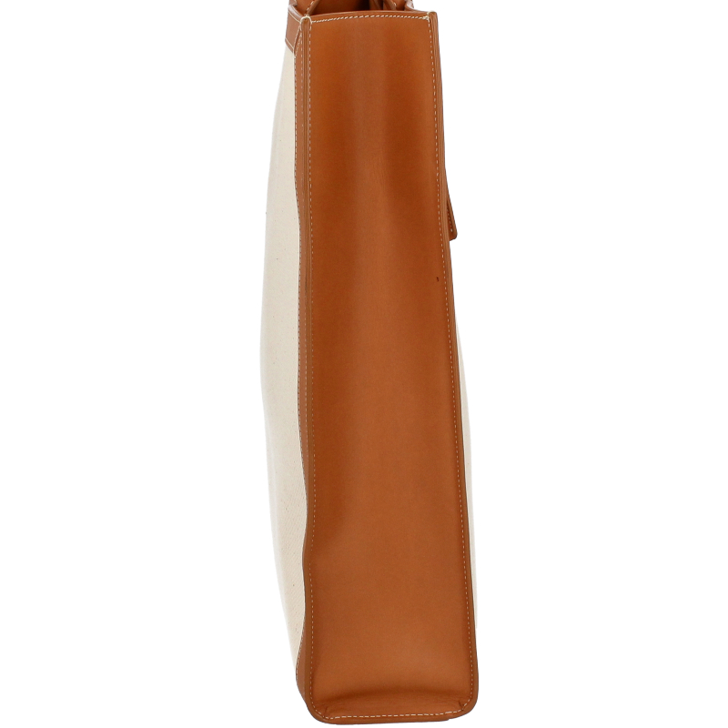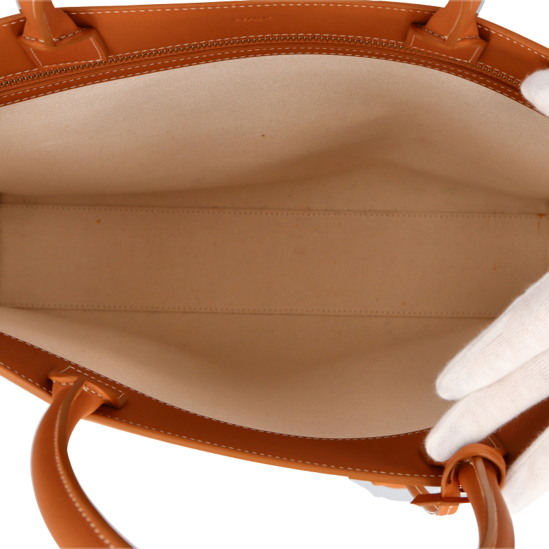 USED品。丈夫なキャンバス地にレザーディティールが上品でカジュアルな印象のスクエア型のトートバッグ。内側メインコパーメントには小分けに収納可能な仕切られたオープンポケットが備えられ、A4サイズが縦にも横にもすっぽり入るのでデイリーはもちろん、様々なシーンで活躍します。