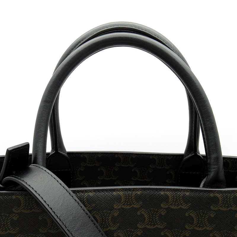 USED品。トリオンフ柄の丈夫なコーティングキャンバス生地にレザーディティールが上品でカジュアルな印象のスクエア型のショルダーバッグ。ショルダーストラップは取り外し可能なので、ハンドバッグとしてもお使いいただけます。