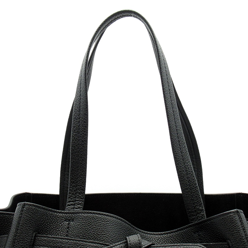 USED品。ベルトでトップを絞れるデザインが特徴のトートバッグです。上質で柔らかなカーフスキンに裏地はスウェードレザーで高級感もあります。