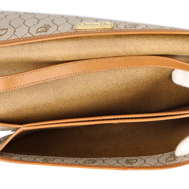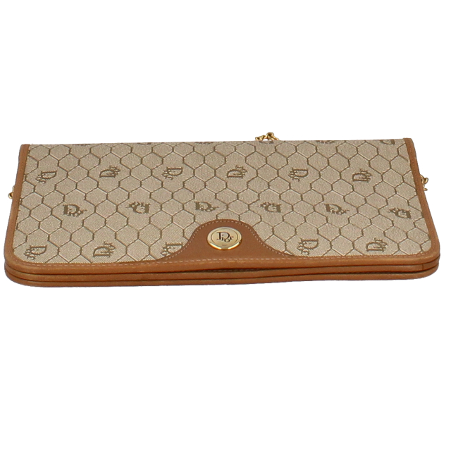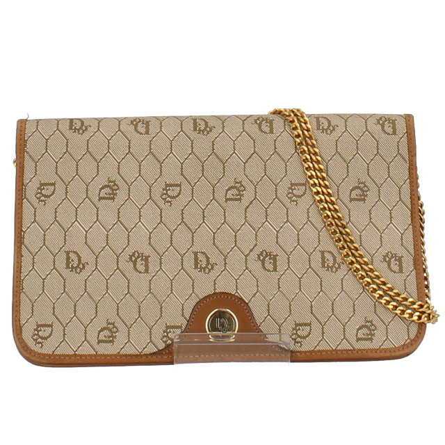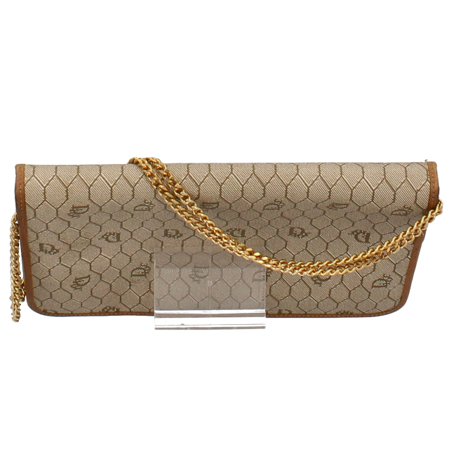 USED品。正六角形を隙間なく並べたハニカム柄にディオールのロゴが可愛らしいアンティークなデザインです。マチが薄い為、必要最低限のものを入れちょっとしたお出かけに最適です。