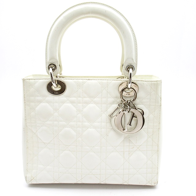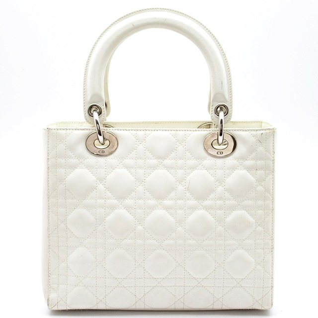 USED品。ディオールの定番ラインとして人気の高い『レディディオール』。光沢感のあるエナメル素材が目を引きます。