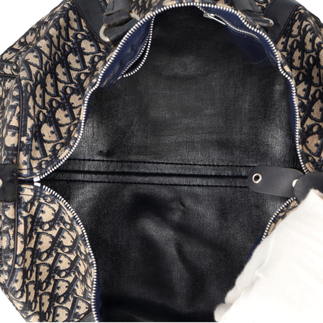 USED品。ジャガード織りのキャンバスに「Dior」のロゴが全面的にあしらわれたデザインの『トロッター』ラインの、スモールなサイズ感が可愛いボストンバッグです。