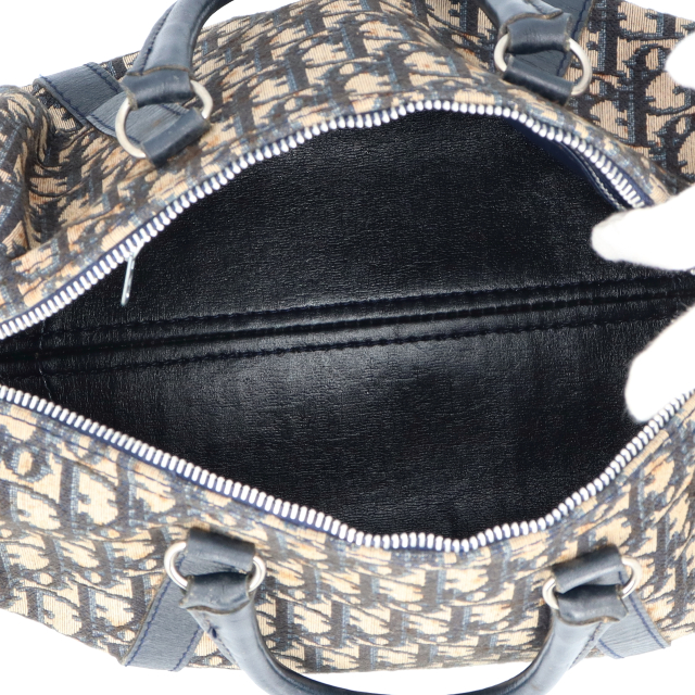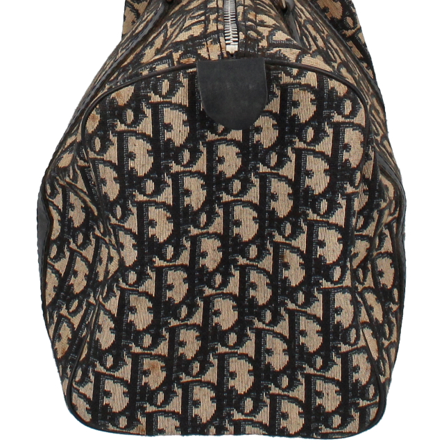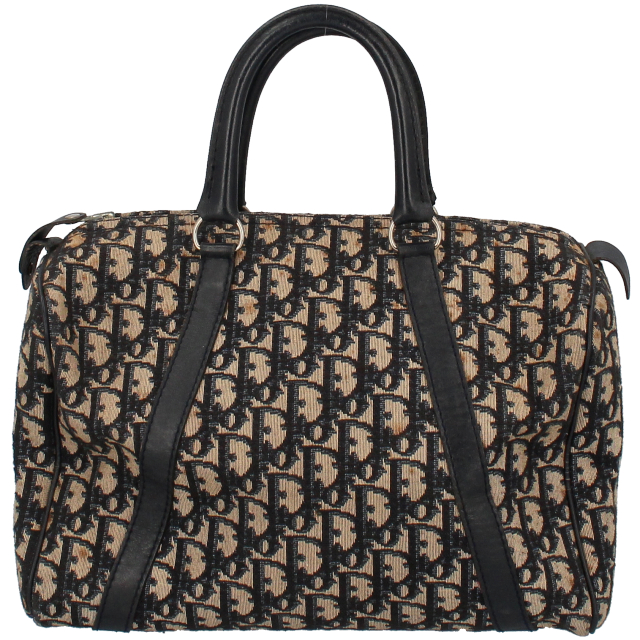 USED品。ジャガード織りのキャンバスに「Dior」のロゴが全面的にあしらわれたデザインの『トロッター』ラインの、スモールなサイズ感が可愛いボストンバッグです。