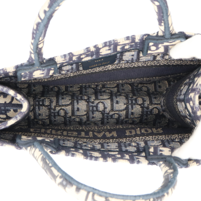 USED品。「ディオール ブックトート」は、ディオールの美意識を語る上で今や不可欠なスタイル。毎日必要なものをすべて収納できるようデザインし、エクリュ & ブルーの「ディオール オブリーク」モチーフを全面に刺繍しました。