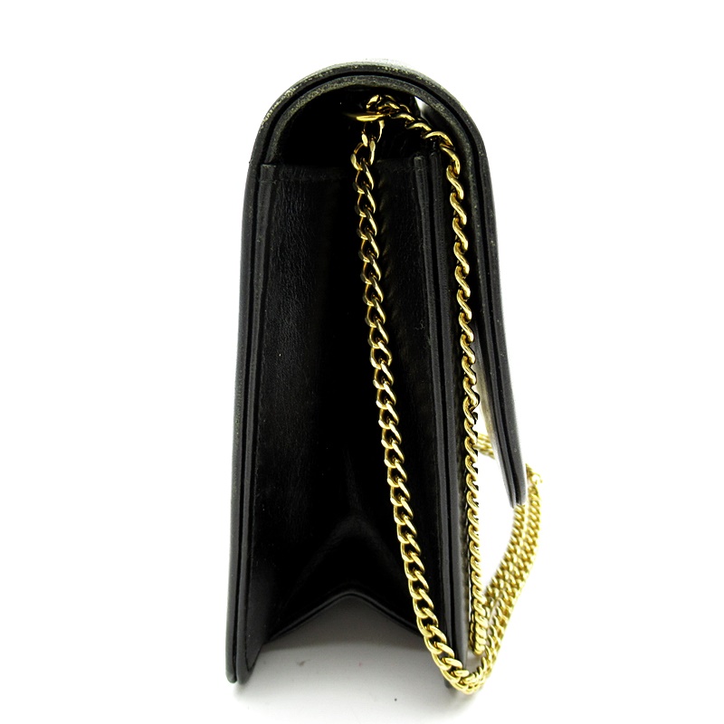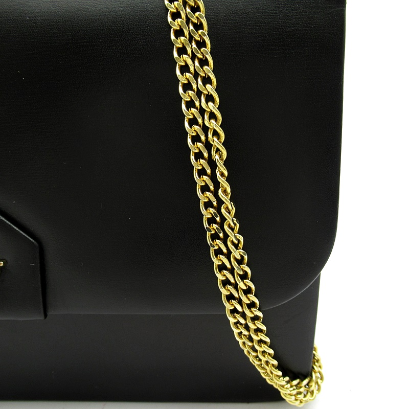 USED品。シンプルなデザインにゴールドの金具が映えるショルダーバッグです。マチが浅く小ぶりなサイズの為、クラッチバッグとしてもおすすめです。