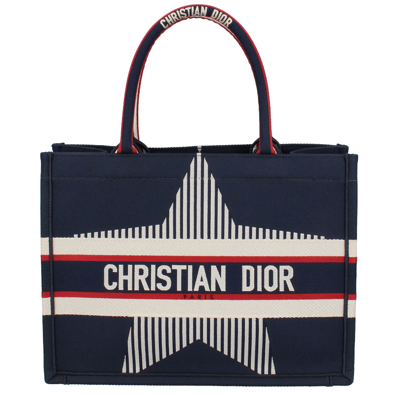 USED品。「DiorAlps (ディオール アルプス)」のカプセルコレクションから、ブルー系スリートーンの刺繍を全面に施したデザインです。ムッシュ ディオールの幸運のシンボルを表すスターと、“CHRISTIAN DIOR PARIS”シグネチャーをあしらいました。