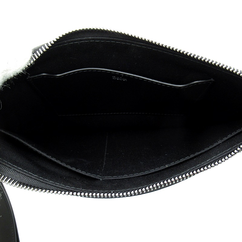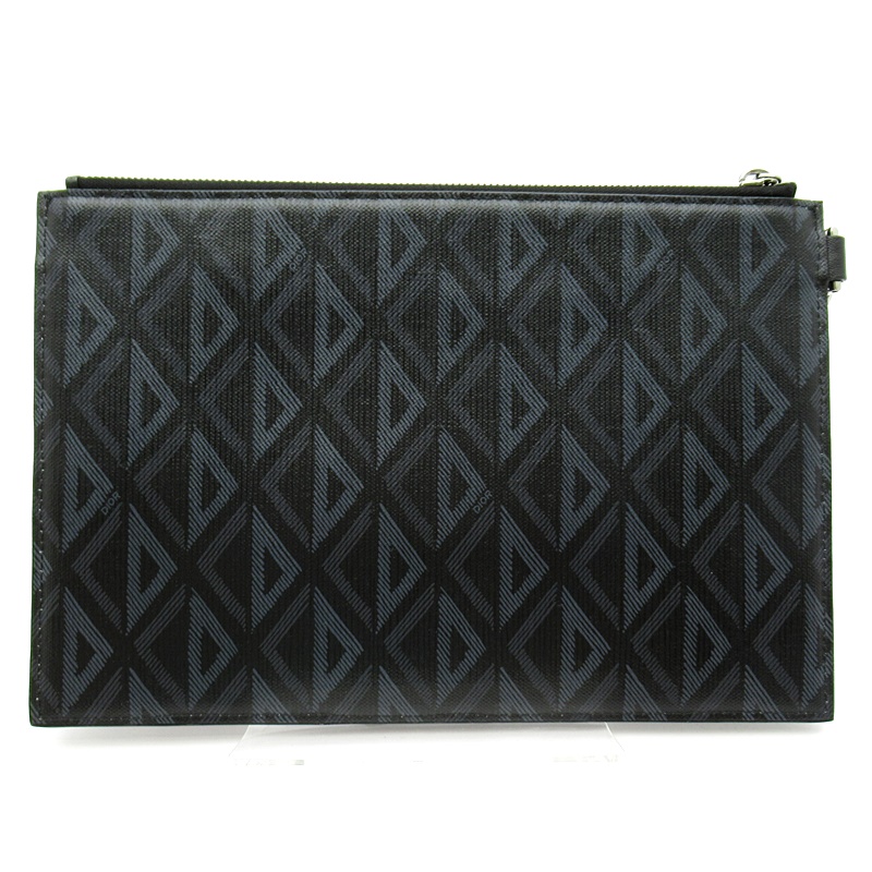 USED品。エレガントですっきりとしたデザインのA5ポーチ。メゾンのアーカイブに着想を得たブラックの「CD Diamond (CD ダイヤモンド)」キャンバスを使用し、同系色のスムースカーフスキンのディテールをあしらいました。ジップ付きコンパートメントには、カードホルダーを収納できるパッチポケットを備えています。