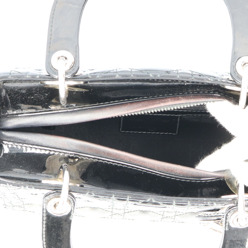 USED品。ディオールの定番ラインとして人気の高い『レディディオール』。光沢感のあるエナメル素材が目を引きます。