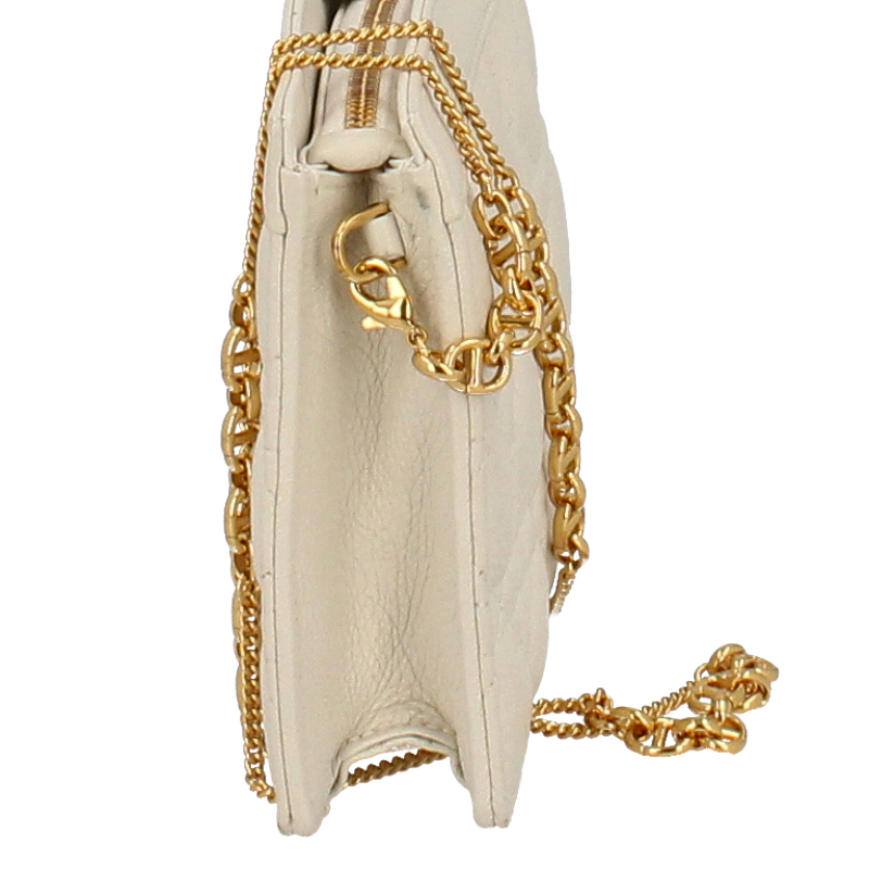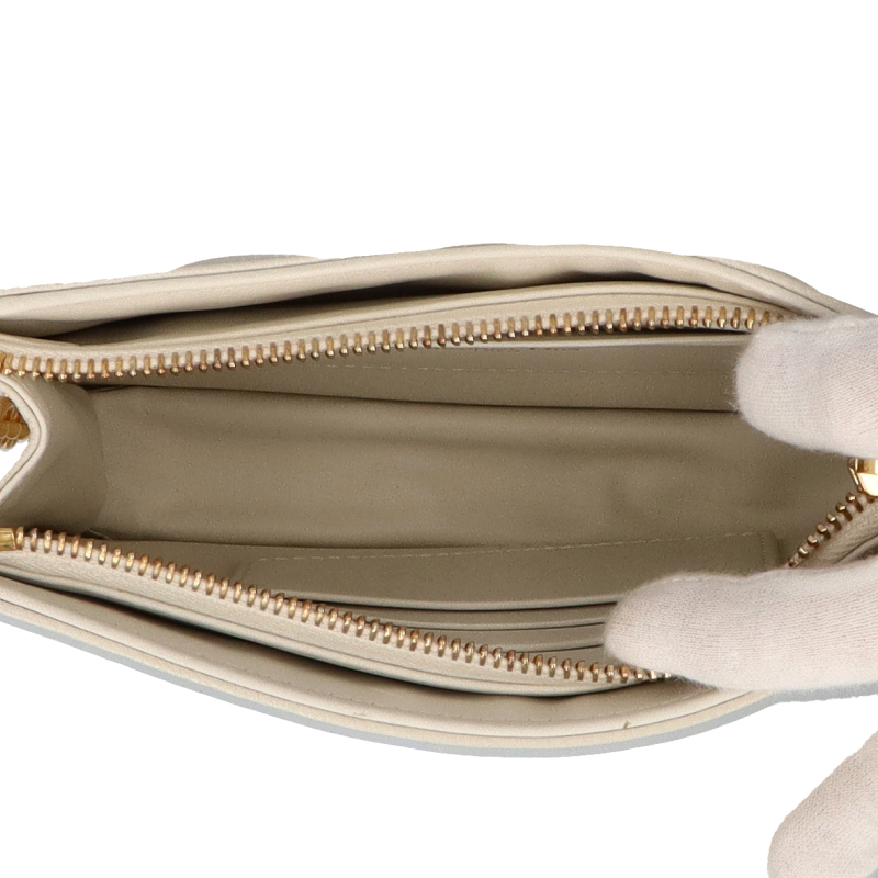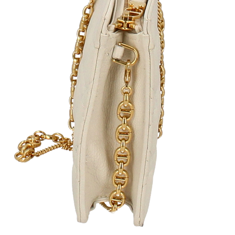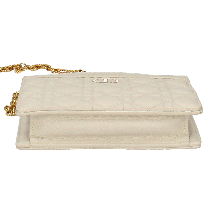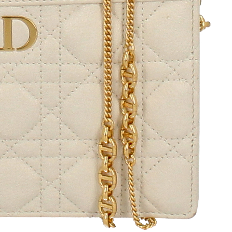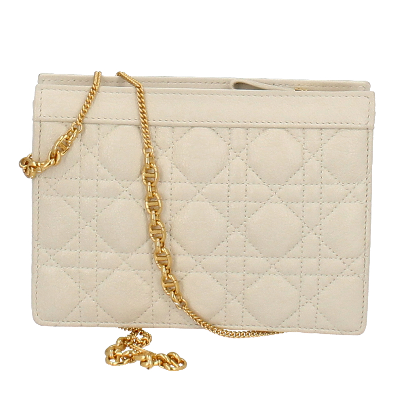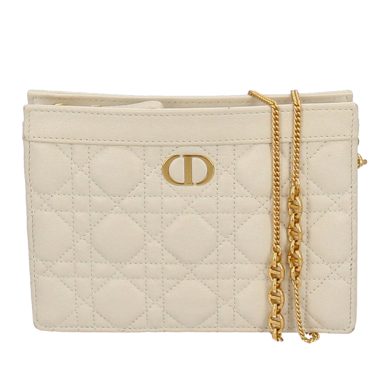 USED品。機能的なトレンドのデザインとメゾンのエレガンスのコードが融合した、チェーン付きのポーチです。しなやかなラテカラーのカーフスキンを使用し、メゾンを象徴するカナージュステッチとフロントのCDシグネチャーで仕上げました。チェーンは取外し可能なのでショルダーバッグやクロスボディバッグとしてもお使いいただけます。