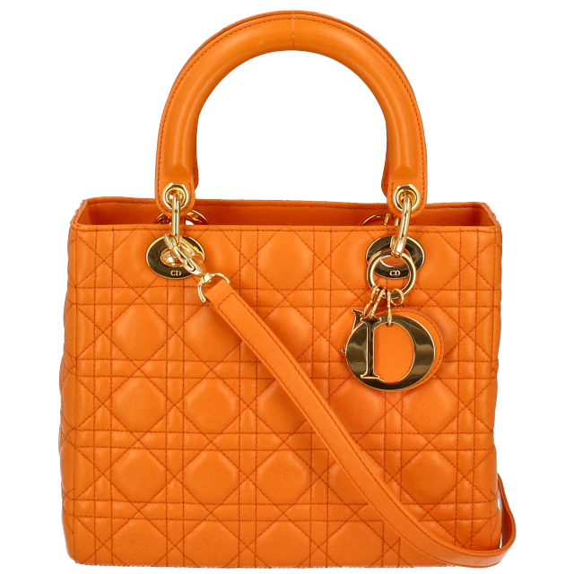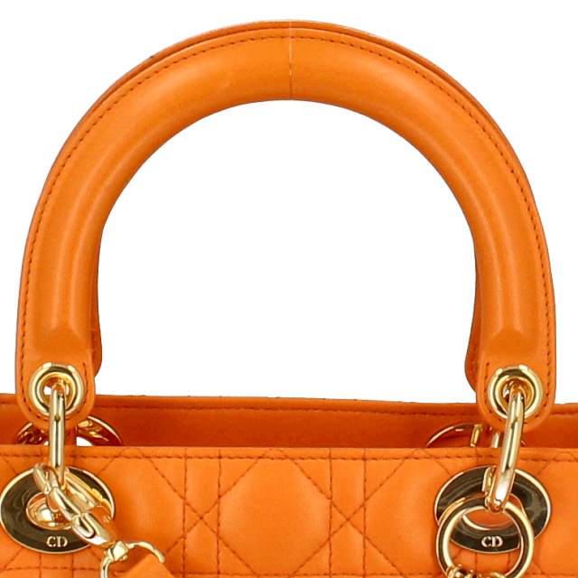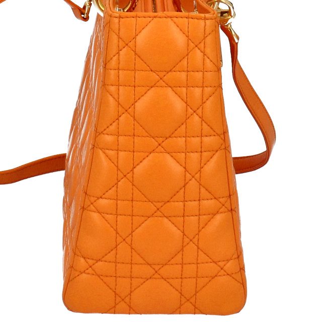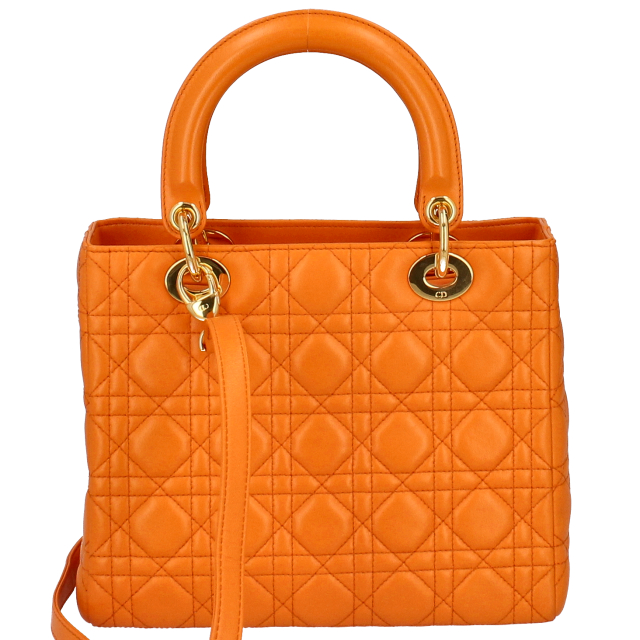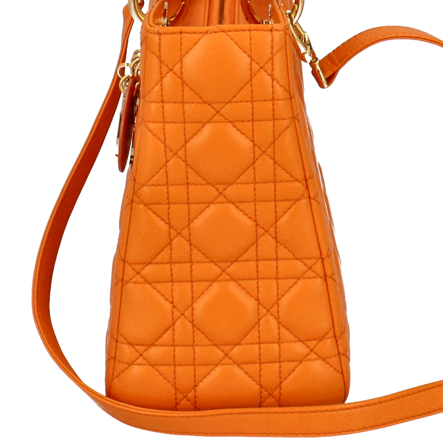 USED品。ひと目でディオールとわかるワンポイントチャームとキルティングデザインが魅力。その上品なルックスは、手にもつだけで品格のある「レディ」に仕上げてくれます。