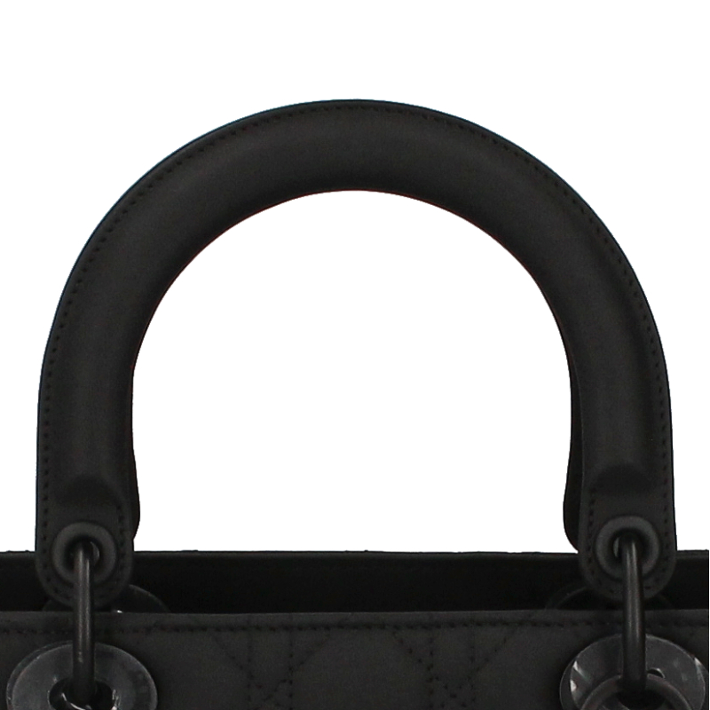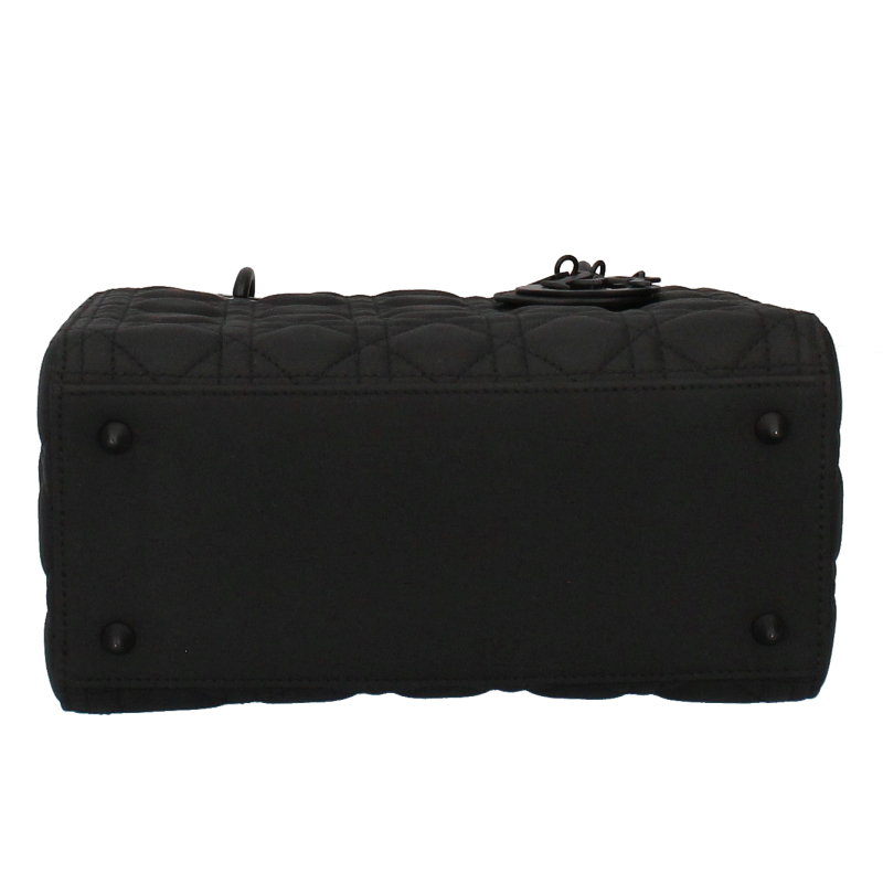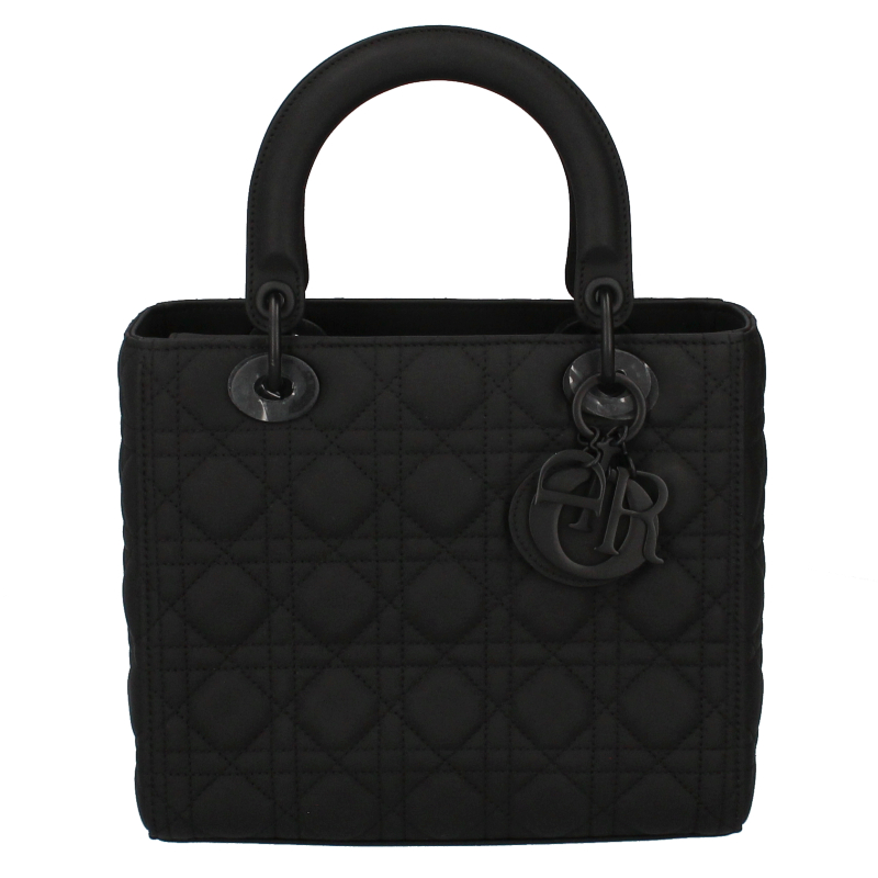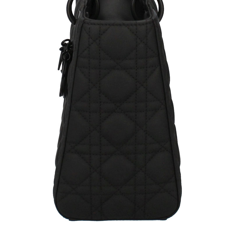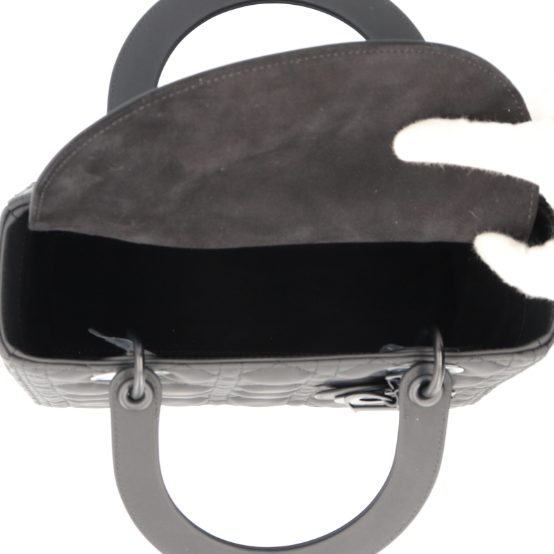 USED品。ブラックのウルトラマットカーフスキンに「カナージュ」ステッチを施し、瞬時にそれとわかるキルトの質感を演出。同系色のメタル製“D.I.O.R.”チャームがきらめきを添え、シルエットの美しさを引き立てます。
