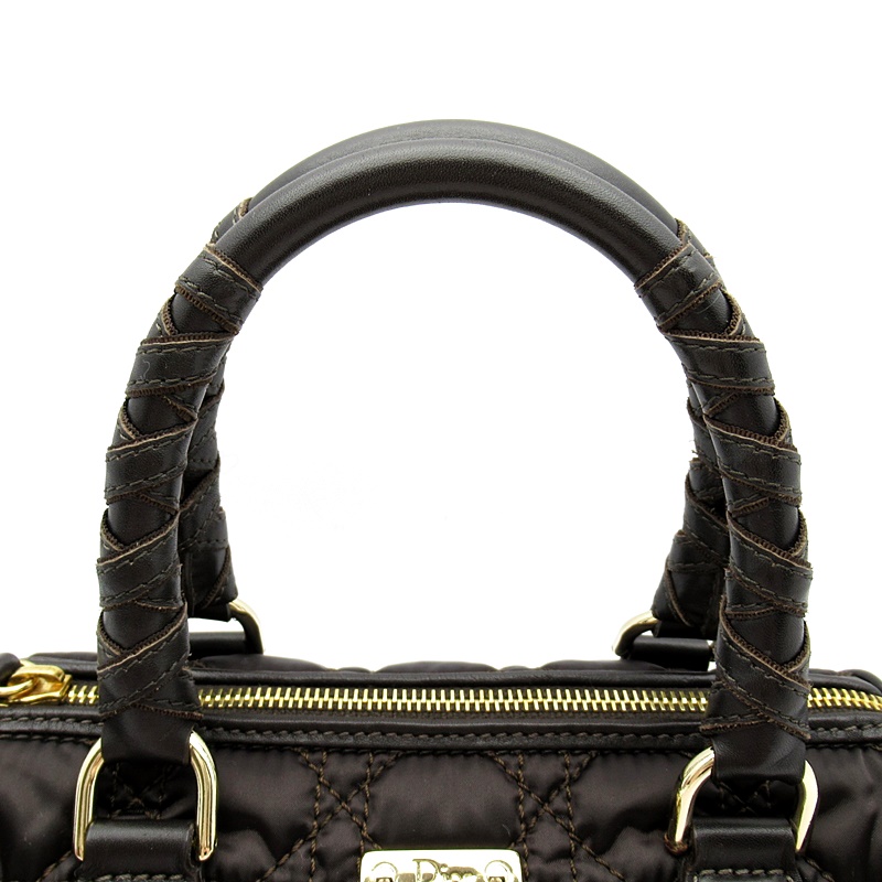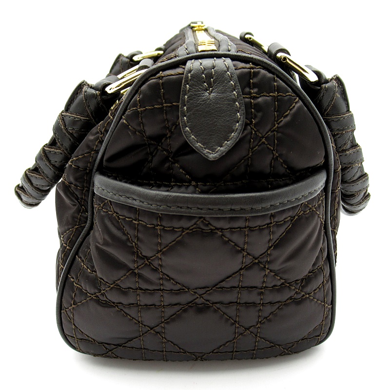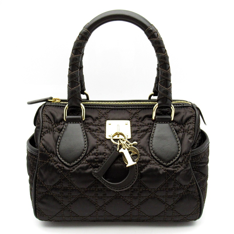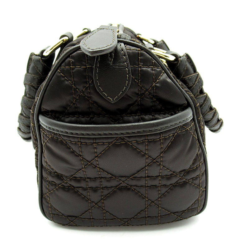 USED品。ひと目でディオールとわかるワンポイントチャームとキルティングデザインが魅力。女性らしいデザインが可愛く、小ぶりながら携帯や2つ折り財布など必需品はしっかり収納できます。