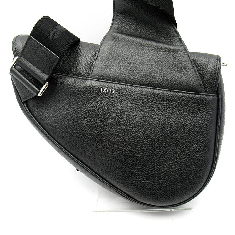 USED品。ゾンの定番「サドル」バッグの最新作は、ブラックのグレインドカーフスキンを使用したスタイル。マグネット式フラップの内側に、必要なものをすべて収納できる便利なジップポケットを備え、長さの調節が可能なChristian Diorジャカードのショルダーストラップを使えば、ショルダーバッグまたはクロスボディバッグとして使用可能です。