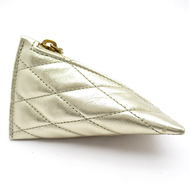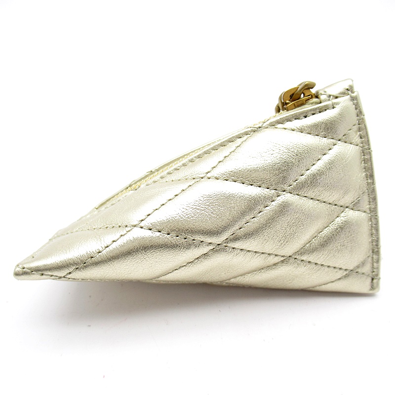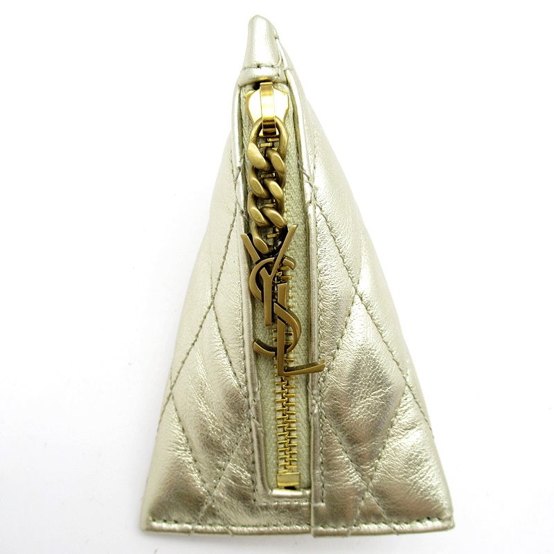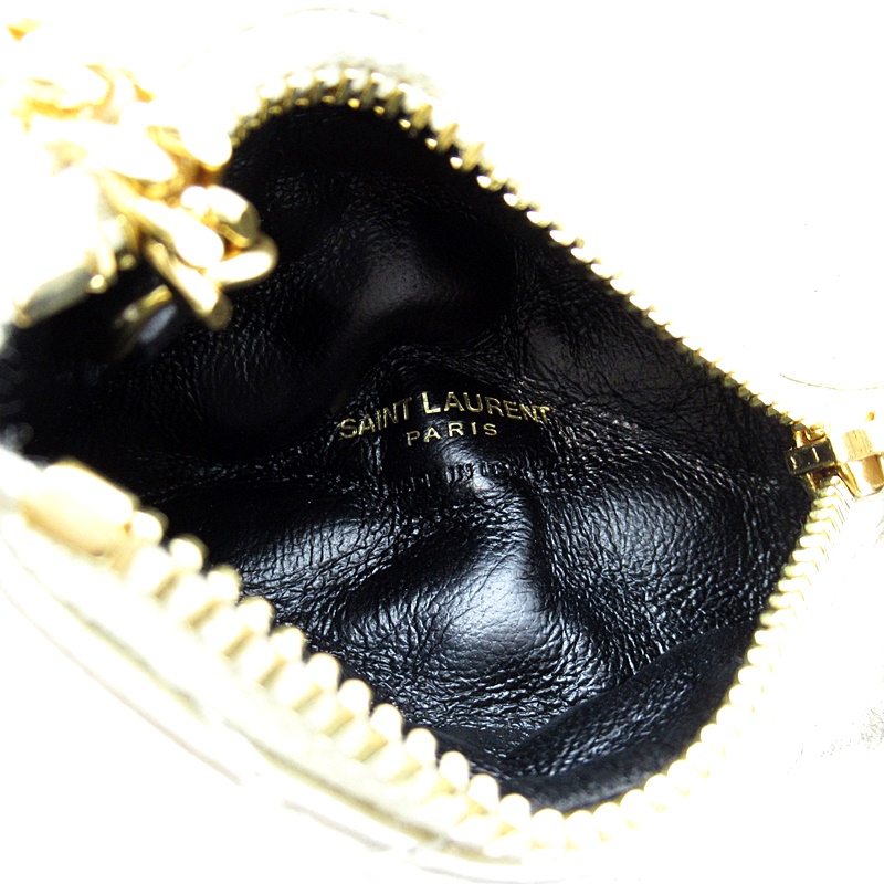 USED品。ヨーロッパの洋菓子“コンフィズリー”からインスパイアされたサンローランの新たなミニチャームです。トライアングルのシルエットが特徴で、コロンとしたフォルムとキルティングレザーが可愛らしいアイテムです。