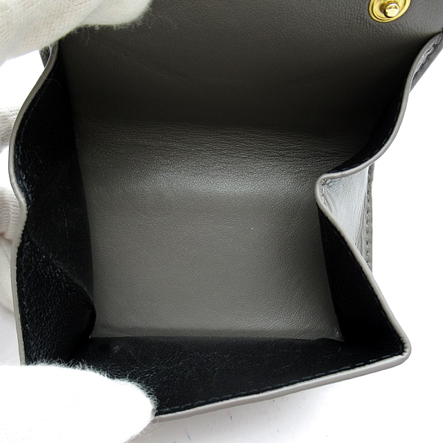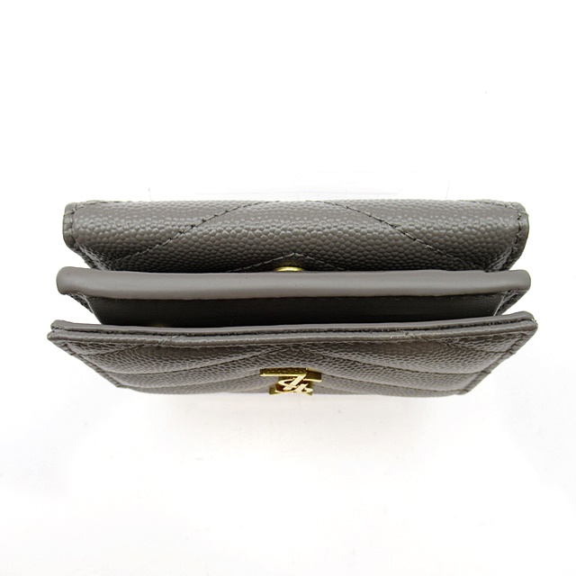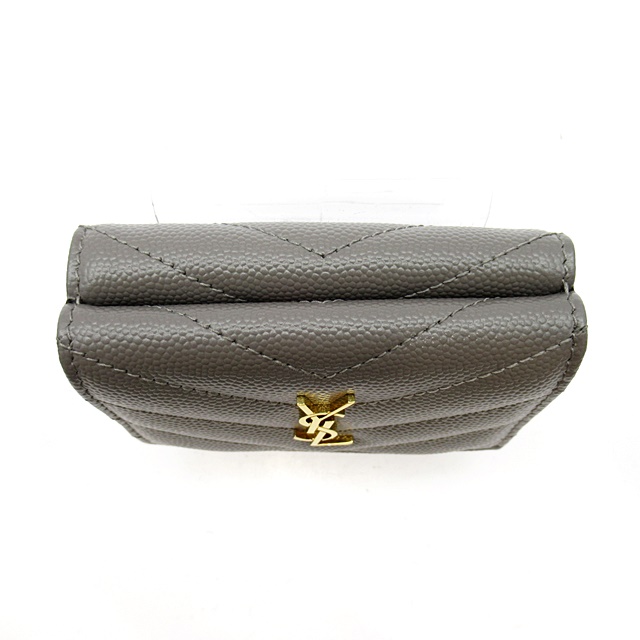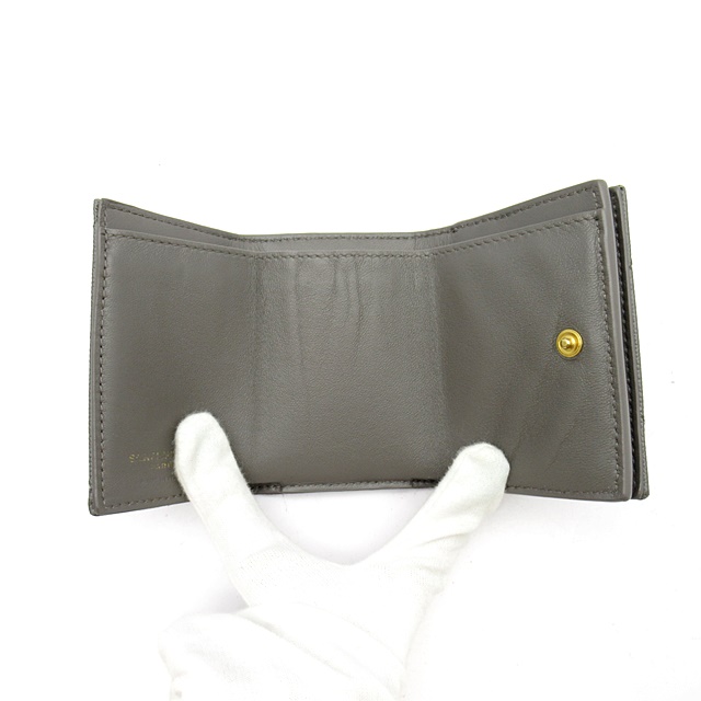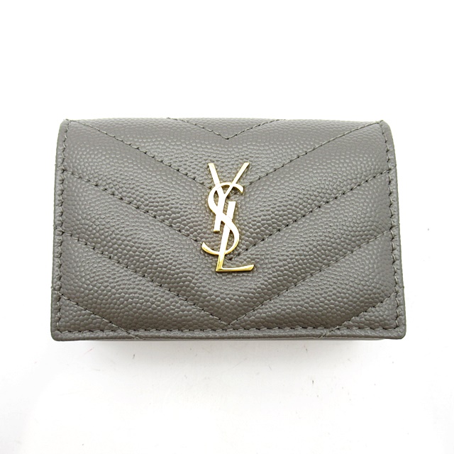 USED品。サンローランの財布です。中央にゴールドのロゴがあり3つ折り財布なので小さいバッグでも入りやすいデザインです。現在、女性に人気のデザインです。