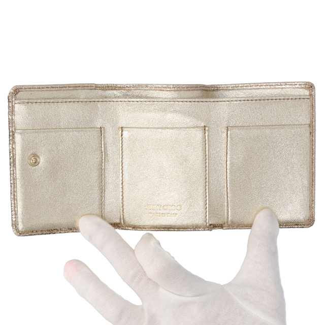 USED品。カード収納も多く、コインケースも大変見やすいジミーチュウの3つ折り財布です。