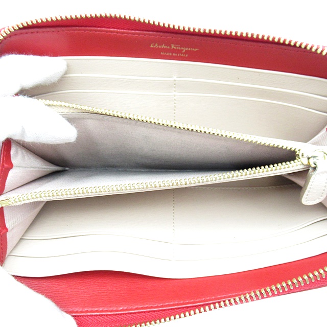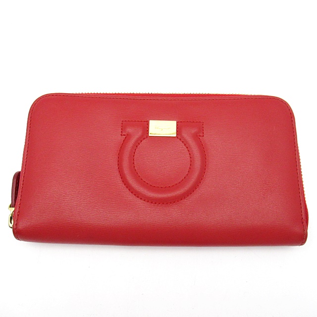 USED品。フロントにフェラガモならではのガンチーニをデザインした長財布。上質なレザーを使用した高級感あふれる一品です。