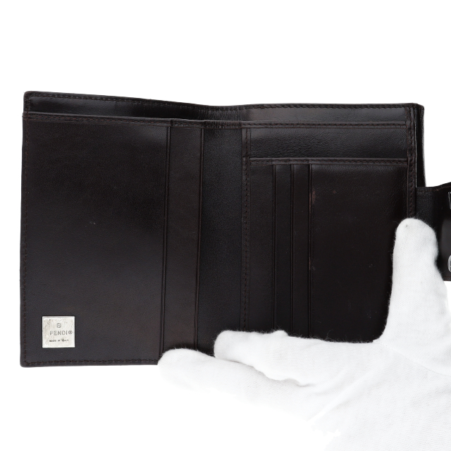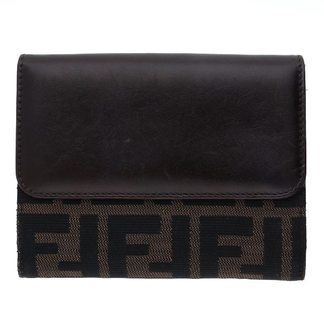 USED品。ズッカ柄が全体的に入った2つ折財布となります。フェンディらしさが全面に出ていて素敵です。
