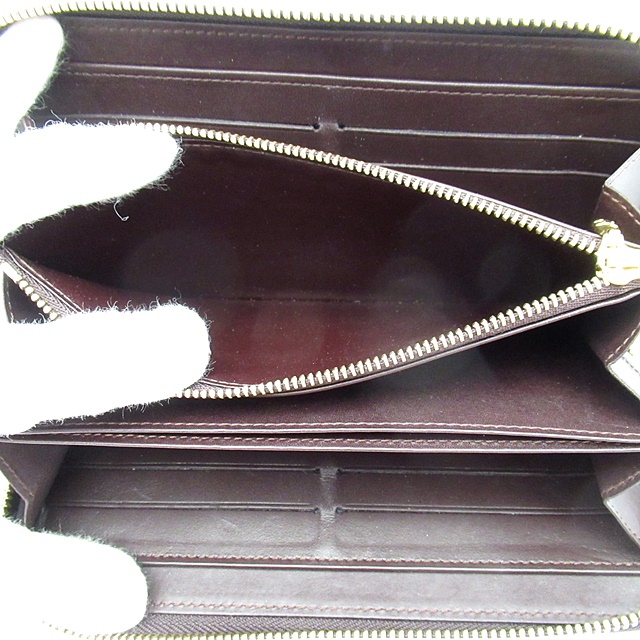 USED品。光沢感のあるパテントカーフのモノグラム・ヴェルニ レザーがすっきりとしたフォルムを引き立てる、アイコニックな「ジッピー・ウォレット」。カードスロットやファスナー付きコインポケット、大容量のコンパートメントを備えた実用性も魅力。中身を取出しやすいラウンドファスナー開閉式です。