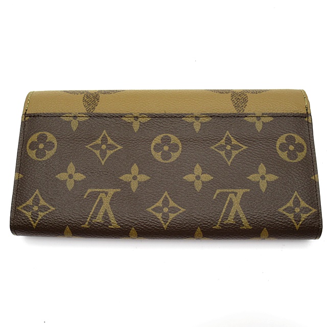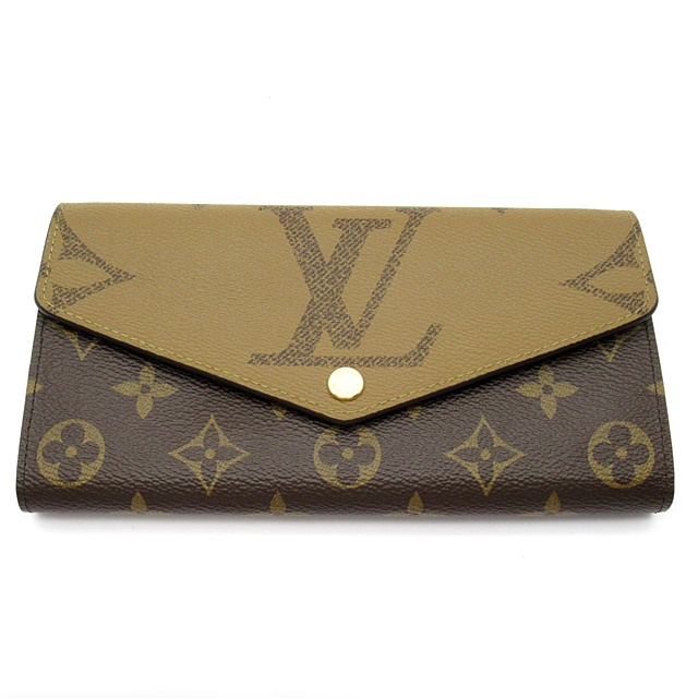 USED品。モノグラム・キャンバスとモノグラム・ジャイアント リバース キャンバスのエレガントな組み合わせで再解釈された「ポルトフォイユ・サラ」。クラシカルな長方形の財布は、整理しやすい内装と豊富なポケットやカードスロットが魅力です。