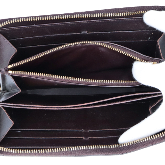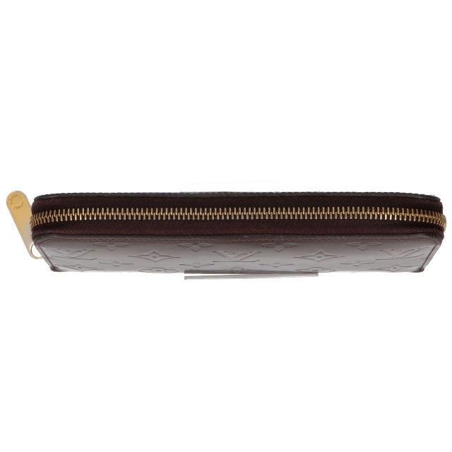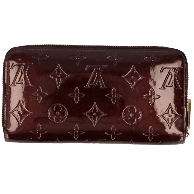 USED品。光沢感のあるパテントカーフのモノグラム・ヴェルニ レザーがすっきりとしたフォルムを引き立てる、アイコニックな「ジッピー・ウォレット」。カードスロットやファスナー付きコインポケット、大容量のコンパートメントを備えた実用性も魅力。中身を取出しやすいラウンドファスナー開閉式です。