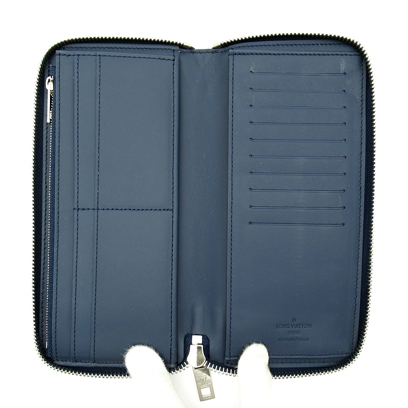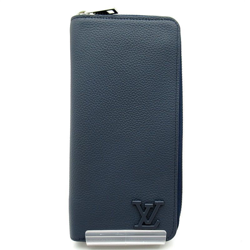 USED品。アエログラム・レザーが洗練された雰囲気とメゾンならではのさりげない個性を醸し出す「ジッピーウォレット・ヴェルティカル」。レトロな航空書簡を想わせるこの上なくしなやかで上質なネイビーブルーのカウハイドレザーを使用し、トーン・オン・トーンのメタル製のLV イニシャルをあしらいました。