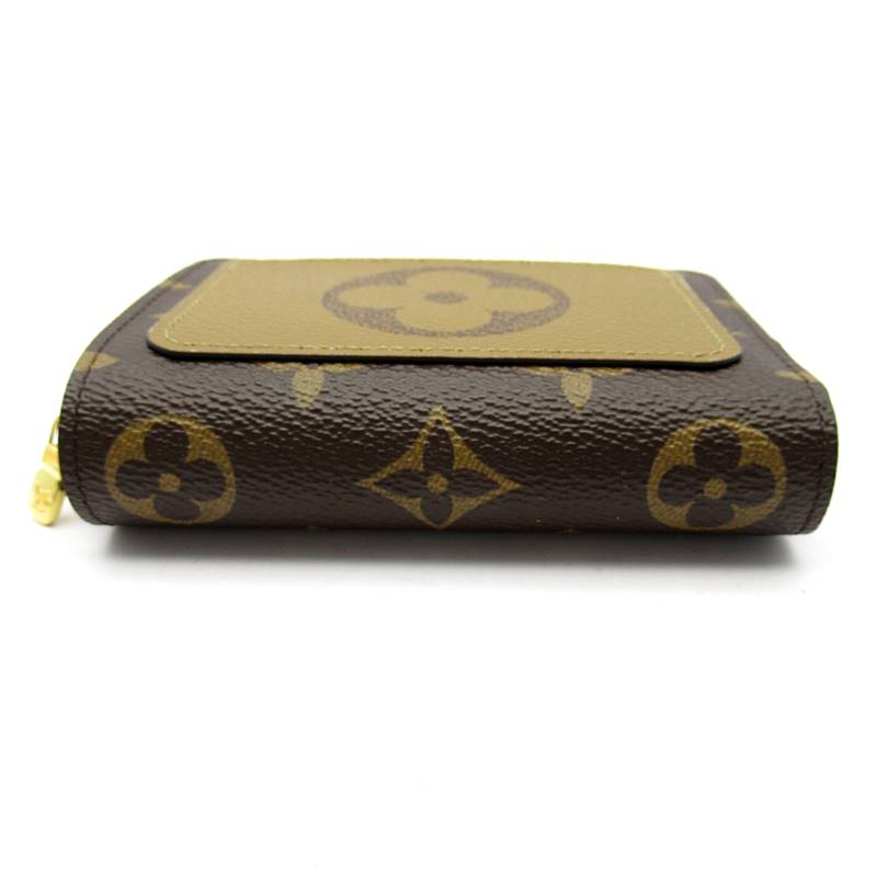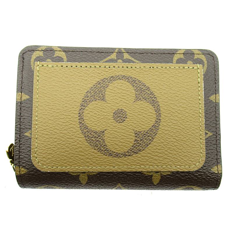 USED品。モノグラム・キャンバスで仕立てた「ポルトフォイユ・ルー」。モノグラム・リバース キャンバス製のモノグラム・フラワー モチーフを添えたフロントポケットが、コントラストを描きます。コンパクトなデザインとスクエアシェイプが魅力の財布です。グレインレザーの内装には6つのカードスロットと紙幣用コンパートメント、サイドにはファスナー付きコインポケットをあしらいました。