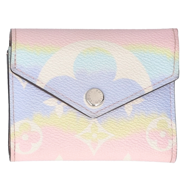 USED品。廃盤品。絞り染めの技法から着想を得たタイダイ柄が特徴の「LVエスカル」。内装にはカードスロット、紙幣とコイン用のポケットを備えています。