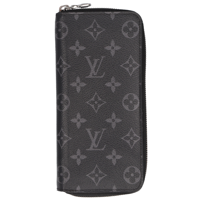 USED品。モダンなモノグラム・エクリプス キャンバスを使用したファスナー開閉式デザインの財布「ジッピーウォレット・ヴェルティカル」は、カードや紙幣を持ち歩くのに最適なスタイリッシュで機能的なアイテムです。