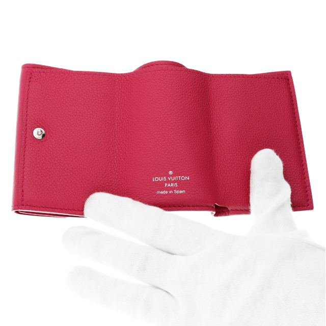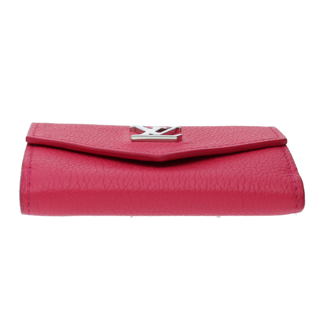USED品。廃盤品。シボ加工を施した上質なレザーを使用した「ポルトフォイユ・ロック ミニ」。フロントの「LV」のメタルロゴがアクセントになっています。コンパクトながら最低限のポケットを備え機能的なアイテムです。