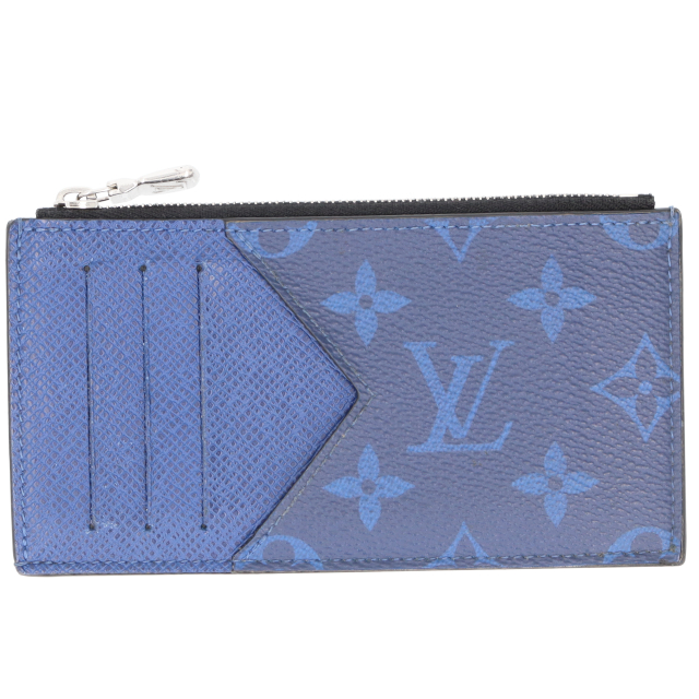 USED品。モノグラム・キャンバスとタイガ・レザーの統一感のある色合いが、洗練されたデザインを引き立てる「コインカード・ホルダー」。内側には4つのクレジットカード用スロット、紙幣やレシートを収納できるコンパートメント、シルバーカラーの引き手が特徴のファスナー付きコインケースを備えています。