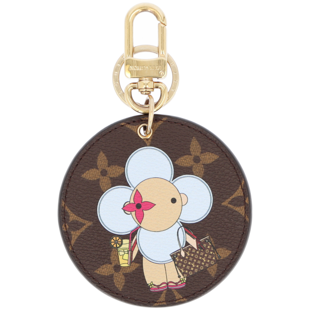 USED品。廃盤品。モノグラムラインのフラワーマークをモチーフにしたキャラクターであるヴィヴィエンヌがモチーフになったバッグチャーム兼キーホルダーの「ポルト クレ・イリュストレ」。「Louis Vuitton」シグネチャーを刻印したゴールドカラーのキーリングをあしらいました。こちらはクリスマス限定アイテムです。
