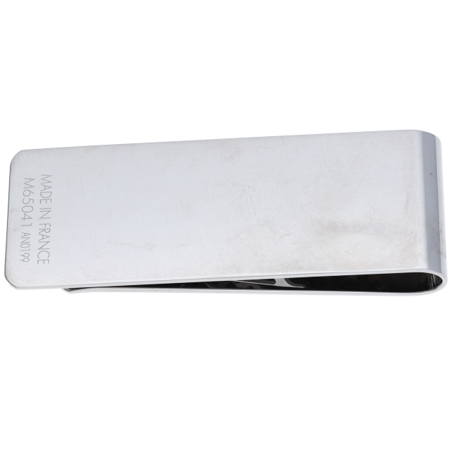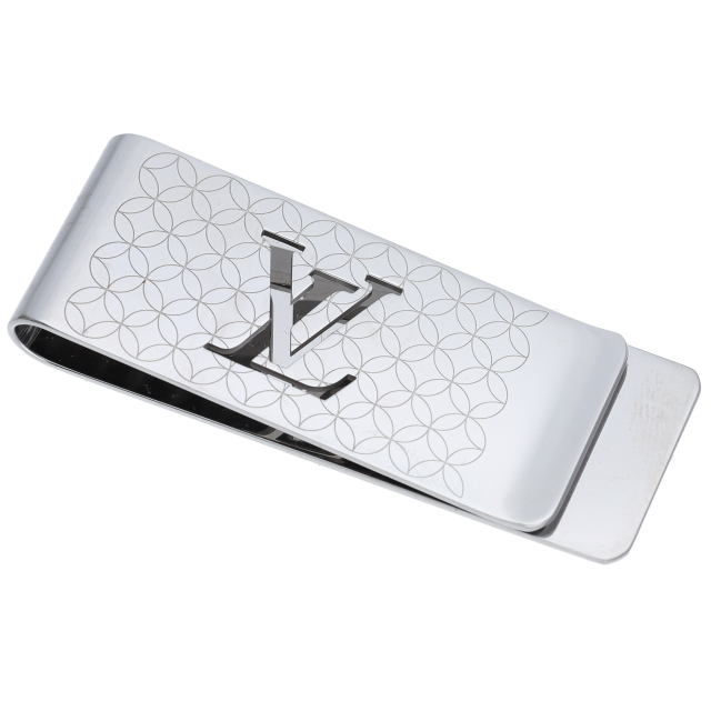 USED品。スタイリッシュなビルクリップ「ビルクリップ・シャンゼリゼ」は、パリにあるルイ・ヴィトン ストアの壁画のデザインにインスピレーションを受け、モノグラム・フラワーのモチーフを使用した個性的なデザイン。中央のLVロゴがアクセント。