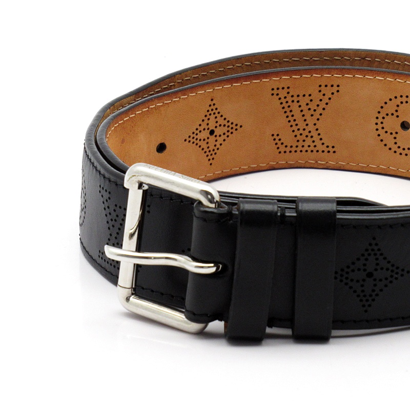 少々使用感有。内側レザーにシミや黒ずみがあります。表記サイズ95/38。