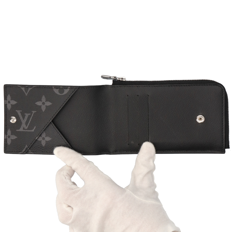 USED品。廃盤品。モノグラム・キャンバスとタイガ・レザーの統一感のある色合いが、洗練されたデザインを引き立てる「ハイブリット・ウォレット」。内側には3つのクレジットカード用スロット、紙幣やレシートを収納できるコンパートメント、シルバーカラーの引き手が特徴のファスナー付きコインケースを備えています。