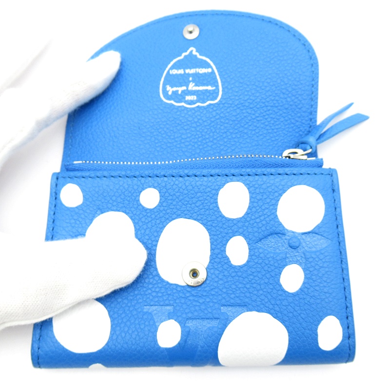 USED品。廃盤品。草間彌生とルイヴィトンのコラボレーションアイテム「LV × YK ポルトモネ ロザリ」。草間彌生を象徴する水玉模様をモノグラム・アンプラントレザーに施した、ポップでユニークなコインケースです。