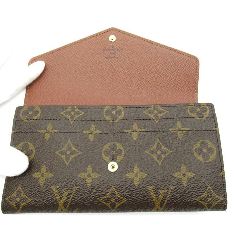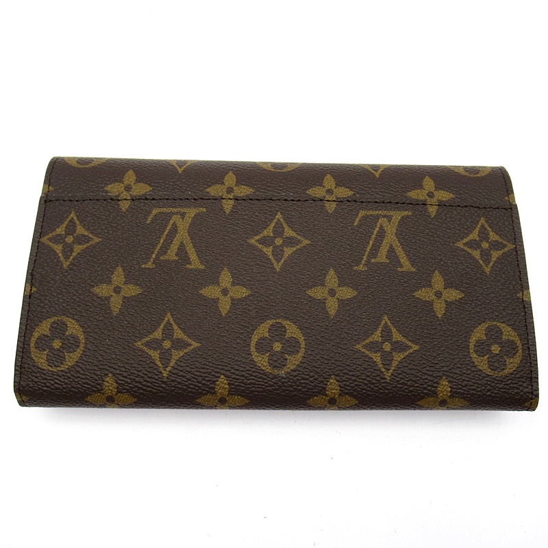 未使用品。モノグラム・キャンバスにグレインレザーを組み合わせたルイ・ヴィトンのクラシカルな長財布「ポルトフォイユ・サラ」。大容量の2つのコンパートメントと中央のファスナー付きコインポケット、複数のカードスロットを備えたエンヴェロップ型のデザインがエレガントな魅力を放ちます。身の回りの必需品をしっかりと収納するのに最適なアイテムです。