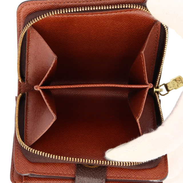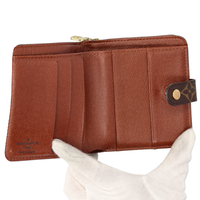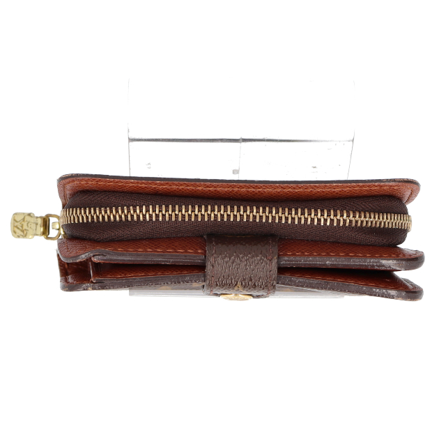 USED品。廃盤品。コンパクトタイプの人気の二つ折り財布。ラウンドファスナータイプで小銭の確認や出し入れも簡単に出来ます。小さいポシェットでも簡単に収納できるコンパクトさが嬉しい財布です。