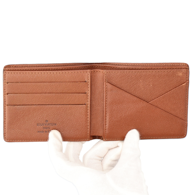 USED品。廃盤品。モノグラム・ラインの札入れ「ポルトフォイユ・ミュルティプル」。クレジットカード、紙幣、レシートなどを収納できます。