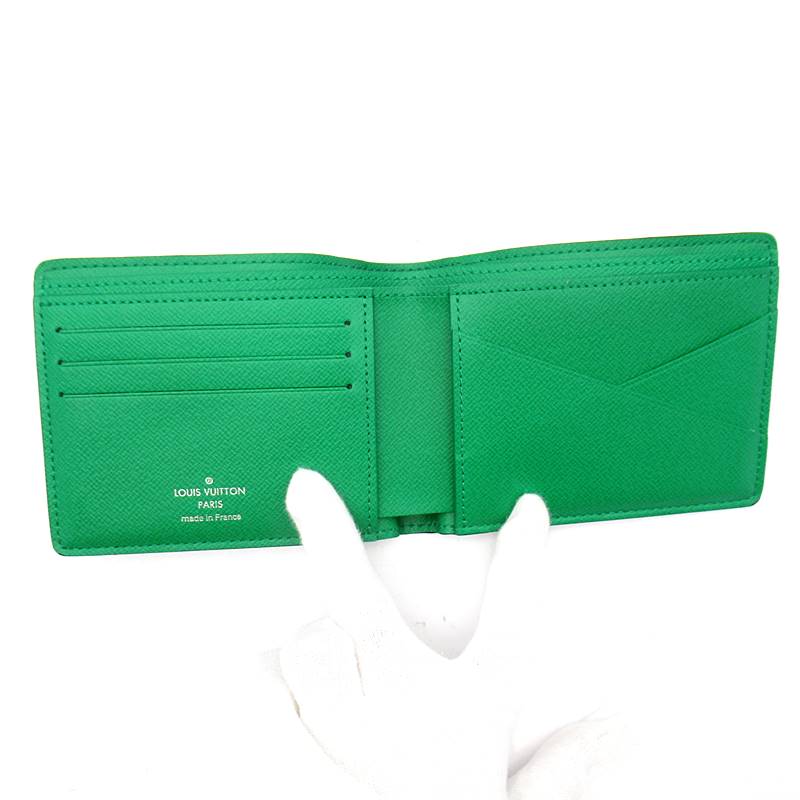 USED品。ルイ・ヴィトンの定番「ポルトフォイユ・ミュルティプル」を「タイガラマ」コレクションの一部としてフレッシュな色合いでアップデート。クールでスポーティなスタイルが魅力の実用的な財布は、カラフルで特徴的な装いを好む男性にぴったりです。