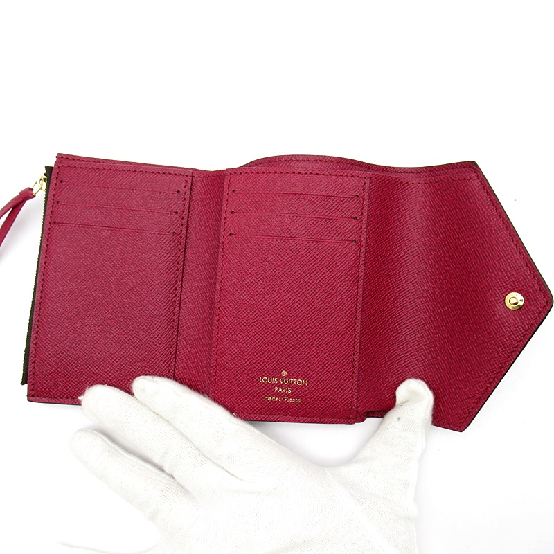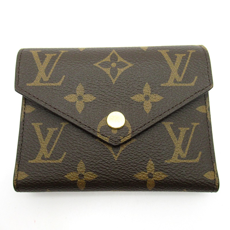 USED品。フェミニンな雰囲気と機能美が光る、モノグラム・キャンバスでコンパクトに仕上げた「ポルトフォイユ・ヴィクトリーヌ」。内装にはカードスロット、紙幣とコイン用のポケットを備えています。