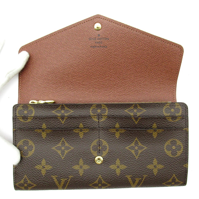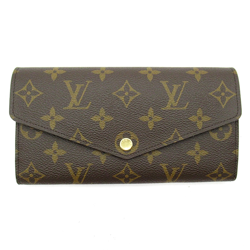 USED品。モノグラム・キャンバスにグレインレザーを組み合わせたルイ・ヴィトンのクラシカルな長財布「ポルトフォイユ・サラ」。大容量の2つのコンパートメントと中央のファスナー付きコインポケット、複数のカードスロットを備えたエンヴェロップ型のデザインがエレガントな魅力を放ちます。身の回りの必需品をしっかりと収納するのに最適なアイテムです。