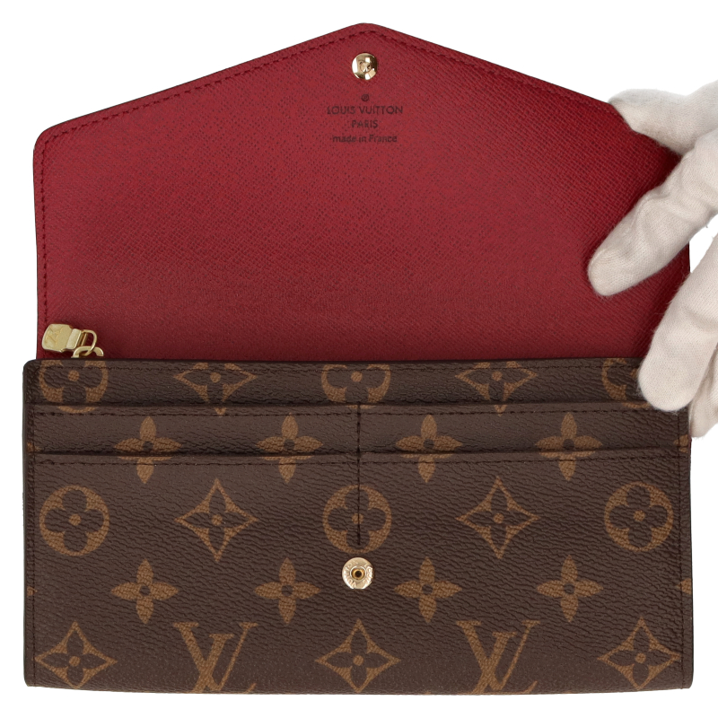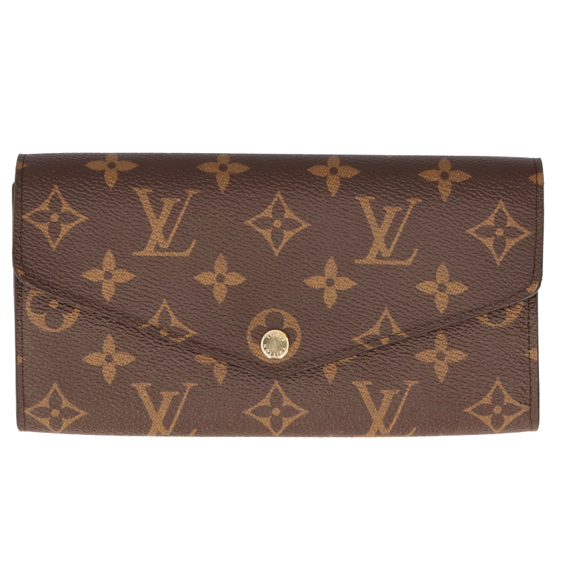 USED品。モノグラム・キャンバスにグレインレザーを組み合わせたルイ・ヴィトンのクラシカルな長財布「ポルトフォイユ・サラ」。大容量の2つのコンパートメントと中央のファスナー付きコインポケット、複数のカードスロットを備えたエンヴェロップ型のデザインがエレガントな魅力を放ちます。身の回りの必需品をしっかりと収納するのに最適なアイテムです。